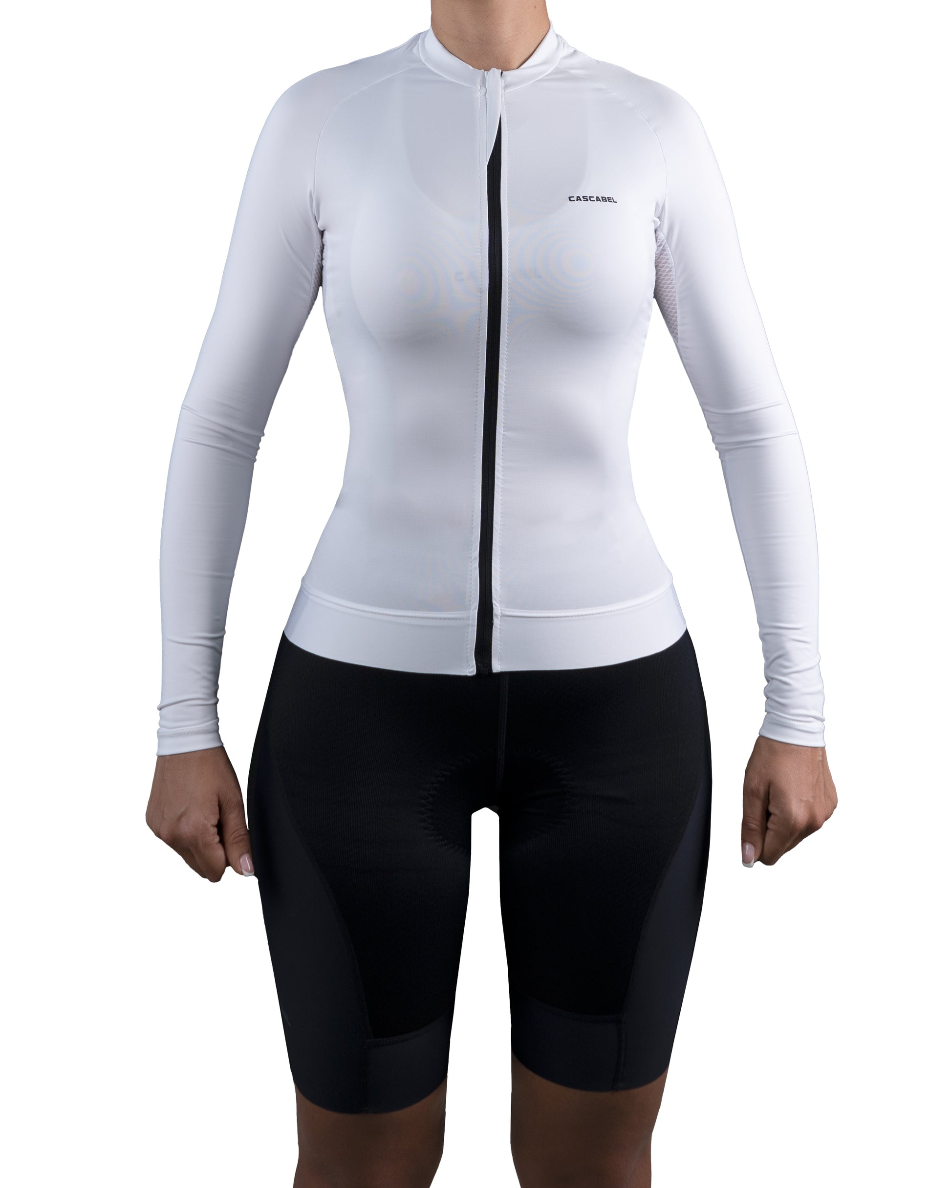 JERSEY MANGA LARGA CICLISMO DAMA BLANCO OPTICO FONDO ENTERO 9003